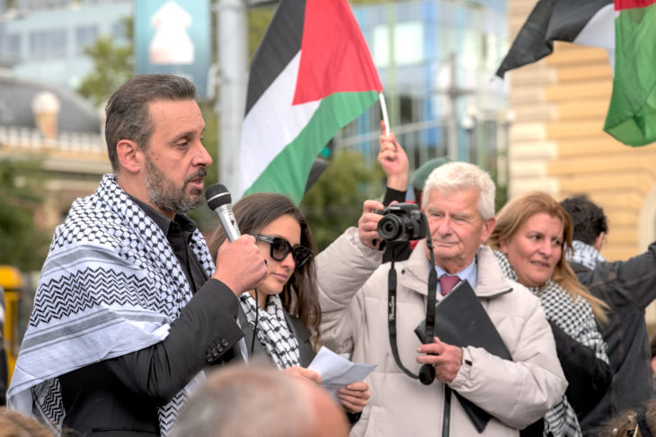 Gáza áldozataiért tüntettek a Nyugati térnél október 6-án, és sok baloldalinak igénye lett volna rá, hogy egy ilyen kiálláson részt vegyen. Feltűnő volt, hogy ez a demonstráció lényegében a legelső, amit teljesen engedélyezett formában tarthattak meg a szervezők, akik közül a sok közügyben magát exponáló és a palesztin-ügyben nagyon aktív Komáromy Gergő (G-Ras) hirdetett a közösségi médiában.