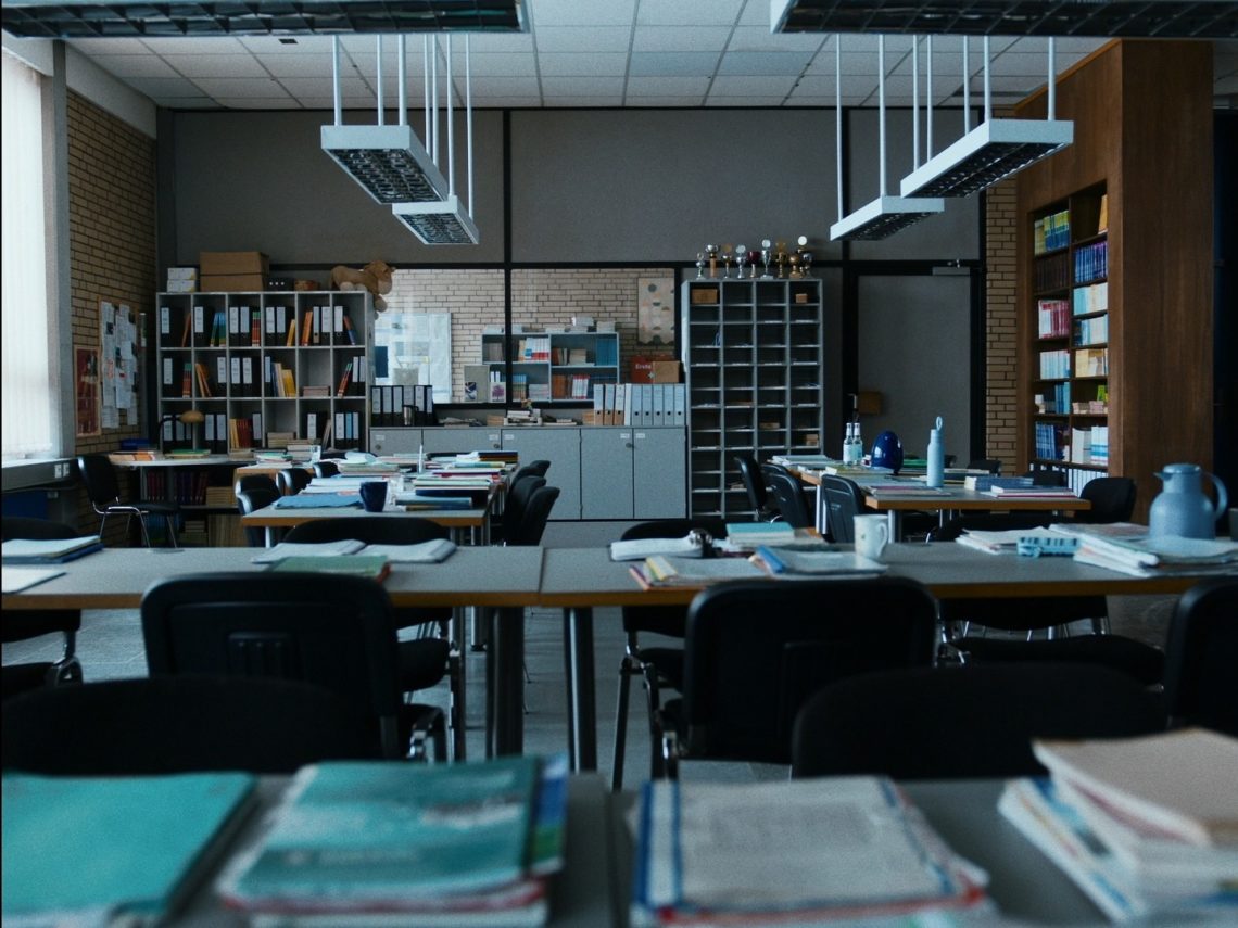 Nem véletlen, hogy az alkotás A tanári szoba címet kapta, hiszen ennek a központi, irányító magnak, helyszínnek a szerepe kérdőjeleződik meg a film során: Çatak tehát ismét megbontja a teret, amely elbeszélése szerint erősen tagolt, hierarchikus. A szereplők nem egy konkrét rezsim vagy párt politikájától szenvednek, hanem attól, ahogyan automatizáltan utánozzák az iskolában azokat a hatalmi mintákat és gyakorlatokat, amelyek áthatják a mindennapjainkat.[17] Ahogy Michel Foucault mellett Antonio Gramsci is megnevezi: „[m]inden »hegemónia« jellegű viszony szükségképpen pedagógiai viszony.”[18] Ezen keresztül értelmezhető a gyerekek megfélemlítő, vallatásszerű kikérdezése a film elején, vagy akár az iskolától való elzárás gyakorlata is.