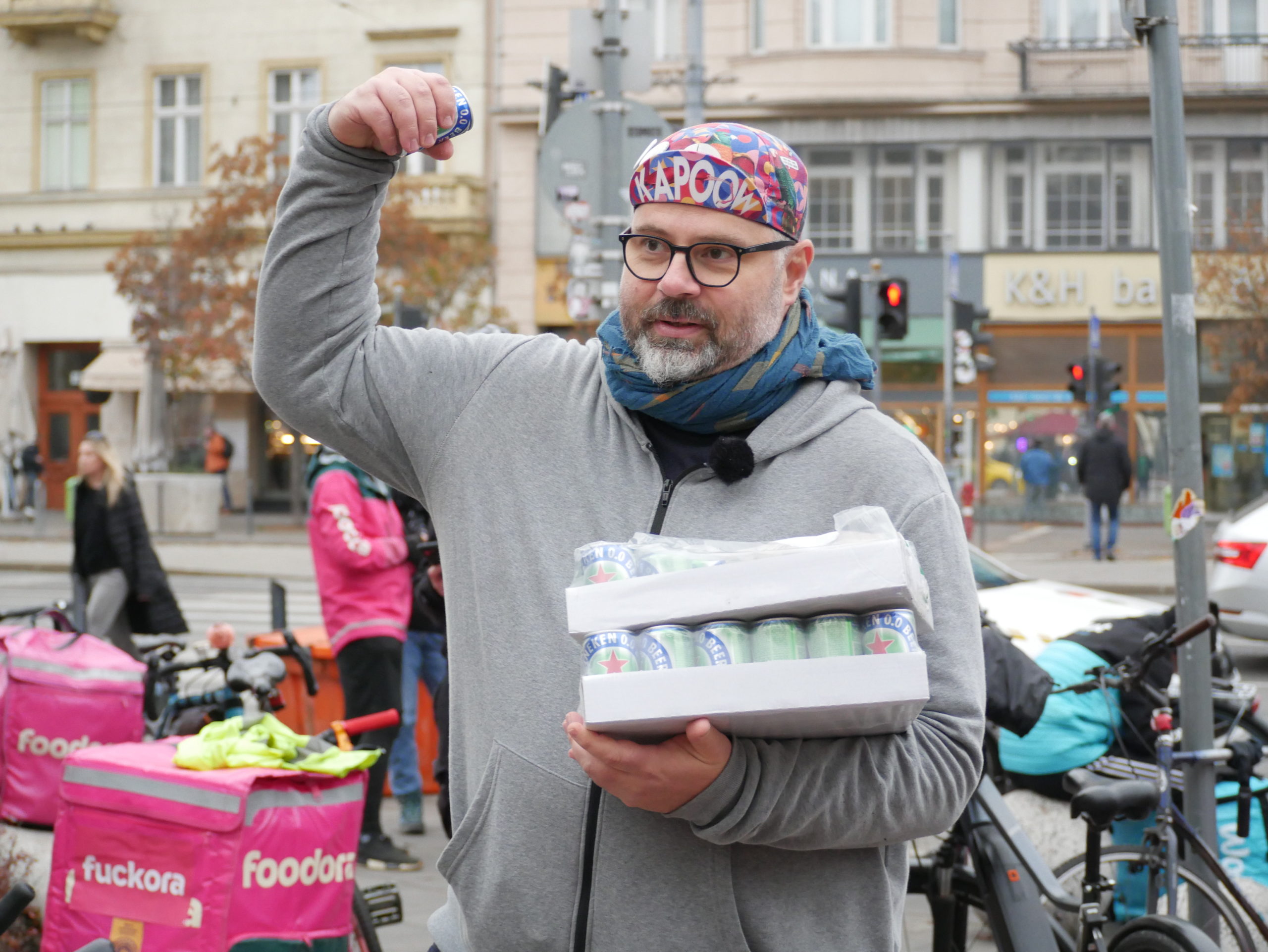 A tüntetés során a Kálvin téren gyülekeztek, ahol a szervezők „futárpikniket” rendeztek, ennek megfelelő eszközökkel – többek között ingyen alkoholmentes sörrel kínálták a megjelenteket, így engem is.