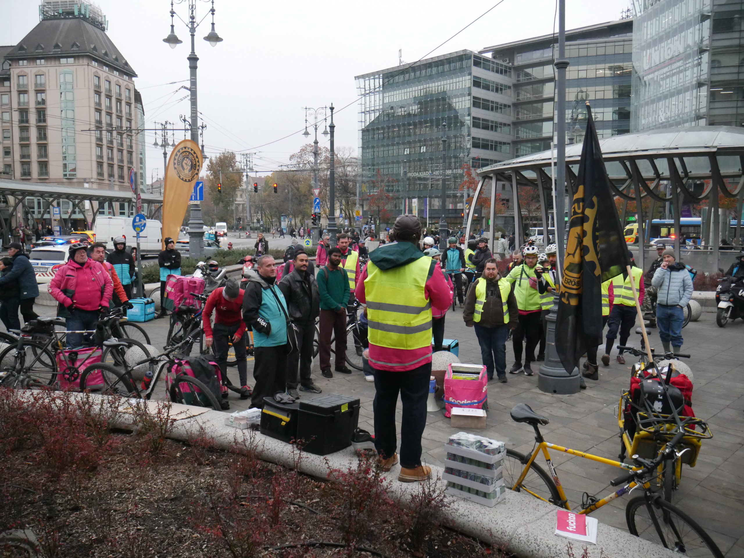 November 14-én, pénteken tüntettek az ételfutárok Budapesten. A Wolt és a Foodora dolgozóit tömörítő Futárok Ligája szakszervezetnek ez volt a harmadik demonstrációja, amivel jobb belátásra próbálják bírni a cégeket. Mi is ott voltunk, és fotókban mutatjuk meg, hogyan álltak ki magukért a futárok.