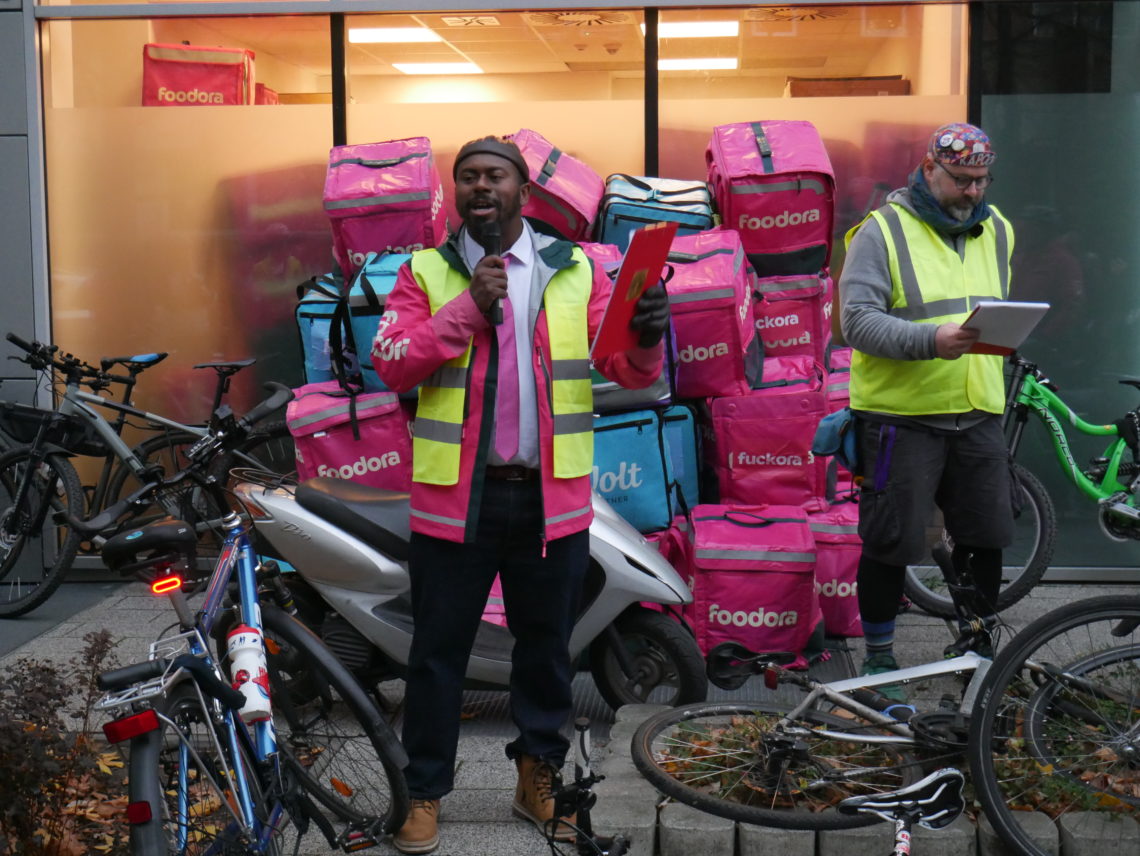 Tóth Gergő, a Futárok Ligájának elnöke az összegyűlteknek kifejtette: nemcsak a dolgozókat kizsákmányoló ételkiszállító vállalatoktól várnak változást, ugyanis a dolgozók jogainak kiterjesztése az állami szabályozáson múlik. Ennek hiányában ugyanis akár a Wolt, a Foodora vagy bármely más, kisebb cég is annyira és úgy él vissza a haknimunkások helyzetével, ahogy csak tud.