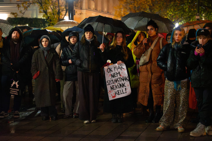 A zuhogó eső ellenére is több százan gyűltek össze szerda este a Szabadság téren a Nők a Nőkért Együtt az Erőszak Ellen Egyesület (NANE) felhívására. Az áldozatok hozzátartozói, politikusok – köztük Karácsony Gergely főpolgármester –, nagykövetségek képviselői, civil szervezetek, jogvédők és a nők elleni erőszak ellen tiltakozó állampolgárok emlékeztek meg azokról a nőkről, akiket a partnerük, volt partnerük, egyéb férfi családtagjuk, vagy egy általuk visszautasított férfi ölt meg, valamint azokról a gyermekekről is, akiket a párkapcsolati erőszakkal összefüggésben öltek meg. Idén is ez az esemény, a Néma Tanúk Felvonulás nyitotta meg a 16 Akciónap hazai programsorozatát. A globális kampány célja a nők elleni erőszakkal szembeni fellépés.