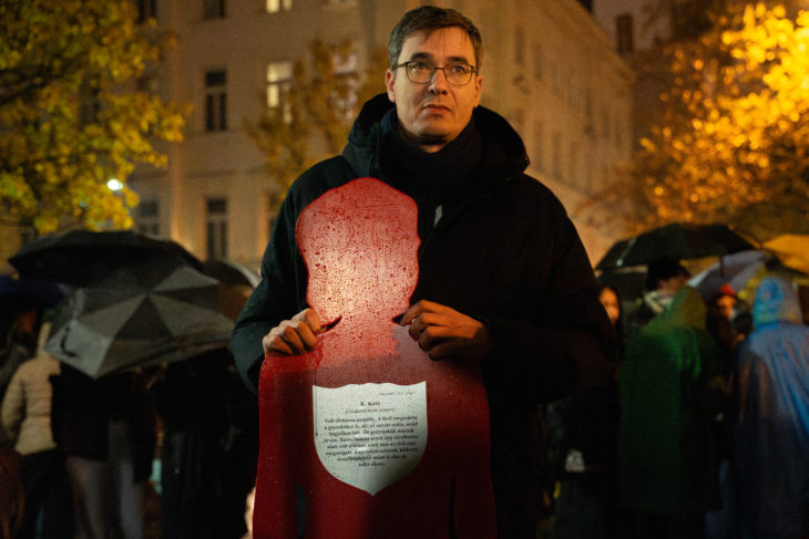 A beszédek után a 200-300 fős tömeg átvonult a Kossuth térre, ahol gyertyákat gyújtottak, és virágokat helyeztek el az áldozatok emlékére.