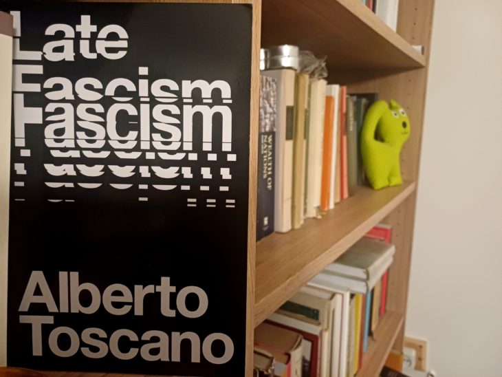 Alberto Toscano Late Fascism (2023) című (magyarul eddig kiadatlan) kötetének kulcsállítása, hogy a demokratikus liberalizmus és a fasizmus közötti határ porózusabb, szabálytalanabb lehet, mint a két világháború közötti időszak és a jelen közötti hasonlóságokat kereső gondolkodás sejtetné. Toscano célja nem egy újabb fasizmus definíció kidolgozása, hanem a nyugati liberális demokratikus rendszerek legitimációs ideológiáinak kritikája.
