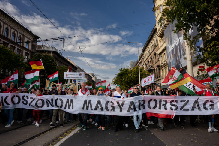 A Mérce a két menetet – és a nap későbbi fejleményeit – élőben közvetítette, a Kétfarkú Békemenetén készült fotókból válogattunk.